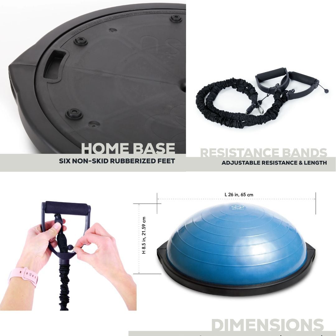 【新登場】BOSU(ボス) バランストレーナー ホーム オリジナル ブルー レジスタンスバンド付き 耐荷重136kg 直径65cm