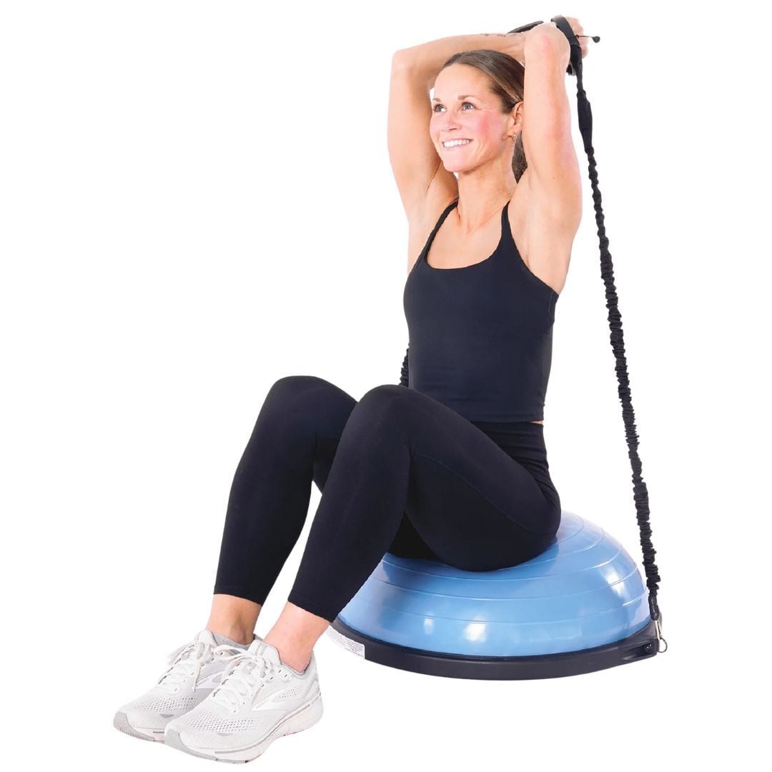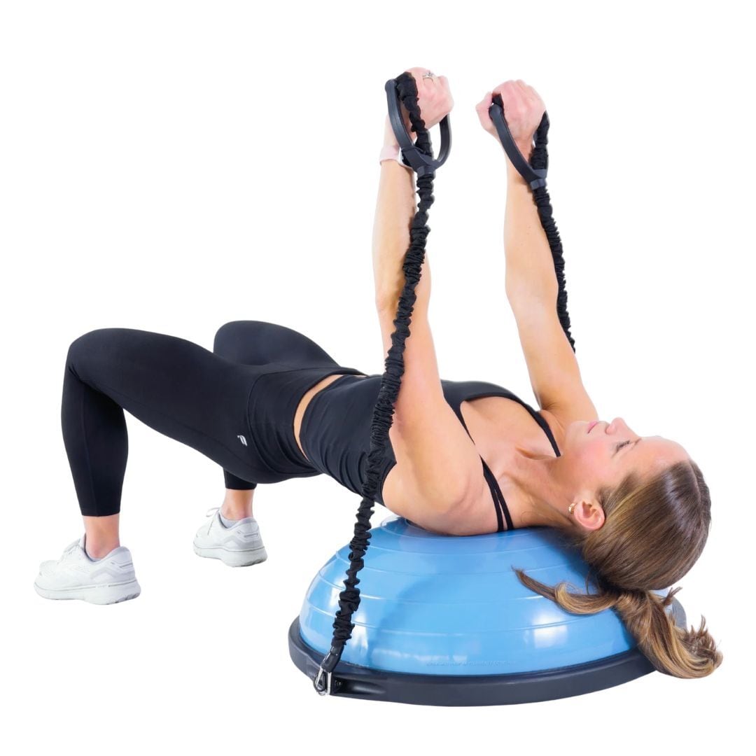 世界中のフィットネスシーンで愛用されている「BOSU®バランストレーナー」に、待望のレジスタンスバンド(チューブ)一体型が登場しました。
